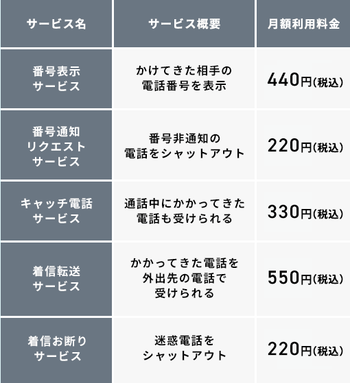 ・番号表示のご利用には、番号表示対応電話機が必要です。