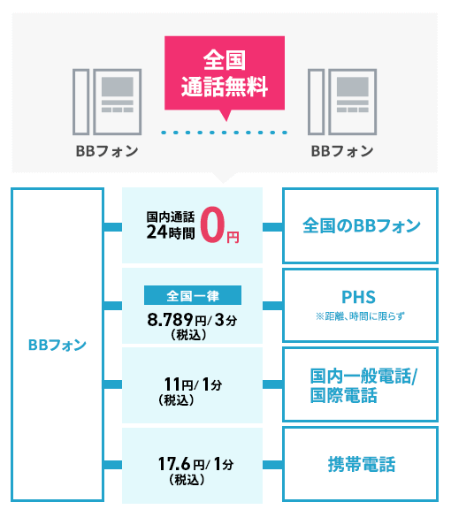 - 「BBフォン」同士の通話が24時間無料。さらにソフトバンク携帯との通話も0円! ※別途BBフォンへの申し込みが必要です。