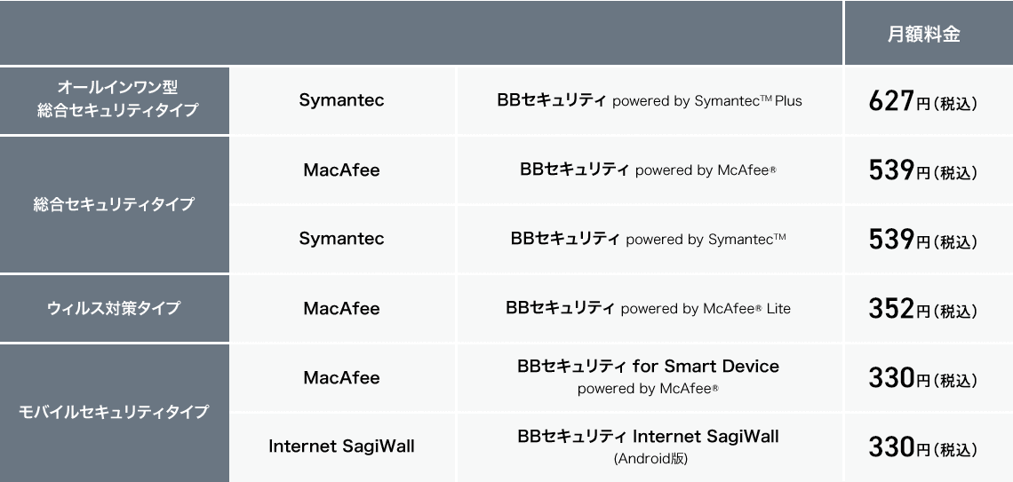 BBセキュリティの利用料