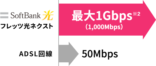 - ※2 1Gbpsとは技術規格上の最大速度です。実際には、お客さまのご利用環境や回線状況により、低下する場合があります。