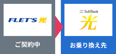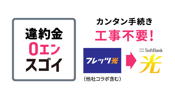「フレッツ光」「他社コラボ光」をご利用中なら、お乗り換えラクラク!カンタンな手続きだけで、工事も必要ナ シ!しかも解約にかかる違約金を、ソフトバンクがなんと満額負担!